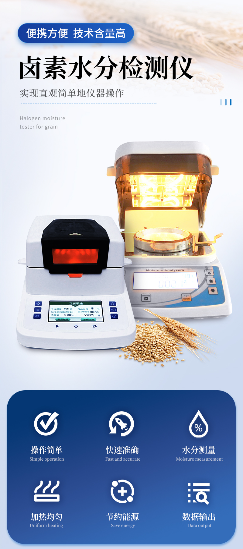 傳統(tǒng)的水分測(cè)定一般是采用烘箱干燥法,一個(gè)樣品的測(cè)試需要兩三個(gè)甚至三四個(gè)小時(shí),而且還需通過天平稱重、人工計(jì)算,才能得出樣品的水分值(含水率)。烘箱法水分測(cè)定的低效率,不能夠適應(yīng)高節(jié)奏的企業(yè)生產(chǎn)需要。幸運(yùn)牌快速水分測(cè)定儀采用**率的烘干加熱器-***的環(huán)狀鹵素?zé)簦瑢?duì)樣品進(jìn)行快速、均勻的加熱,樣品的水份持續(xù)不斷的被烘干。整個(gè)測(cè)量過程,儀器全自動(dòng)的實(shí)時(shí)顯示測(cè)量結(jié)果:樣品重量、含水量、含固量、測(cè)定時(shí)間、加熱溫度等。