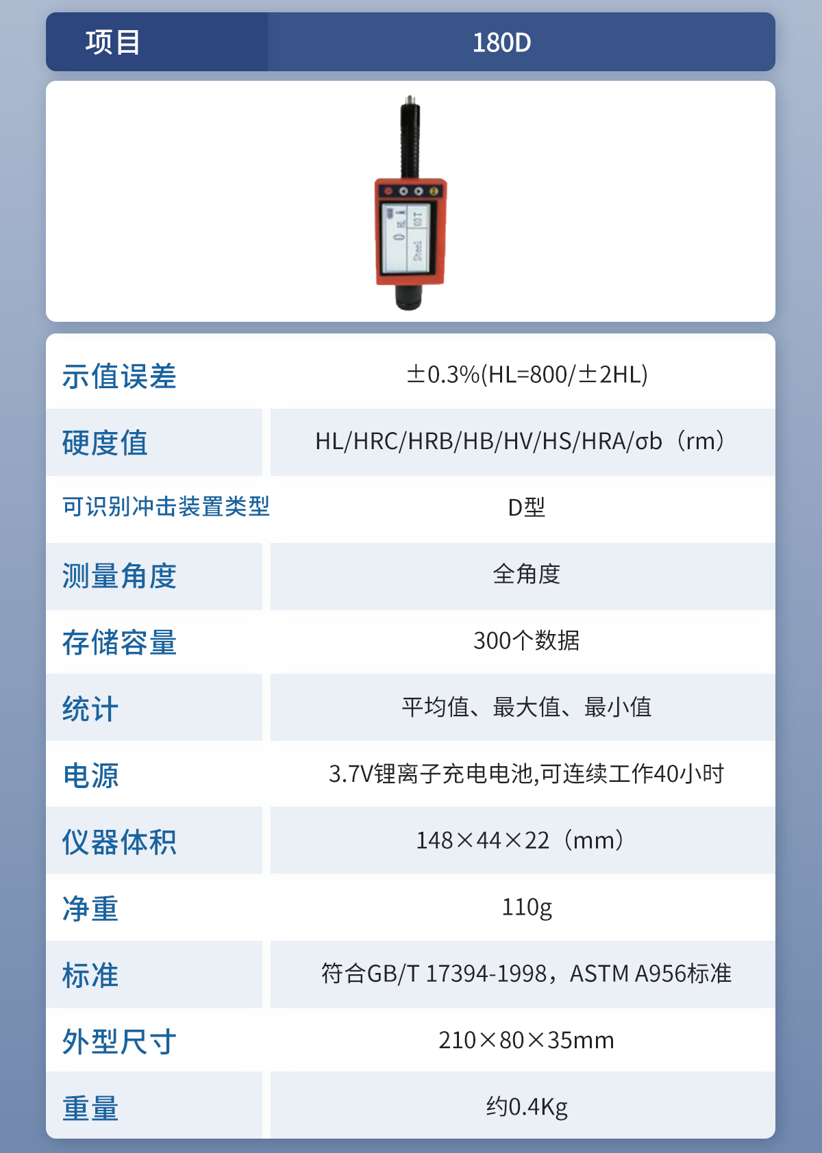 筆式里氏硬度計(jì) YT-180DL 技術(shù)參數(shù)