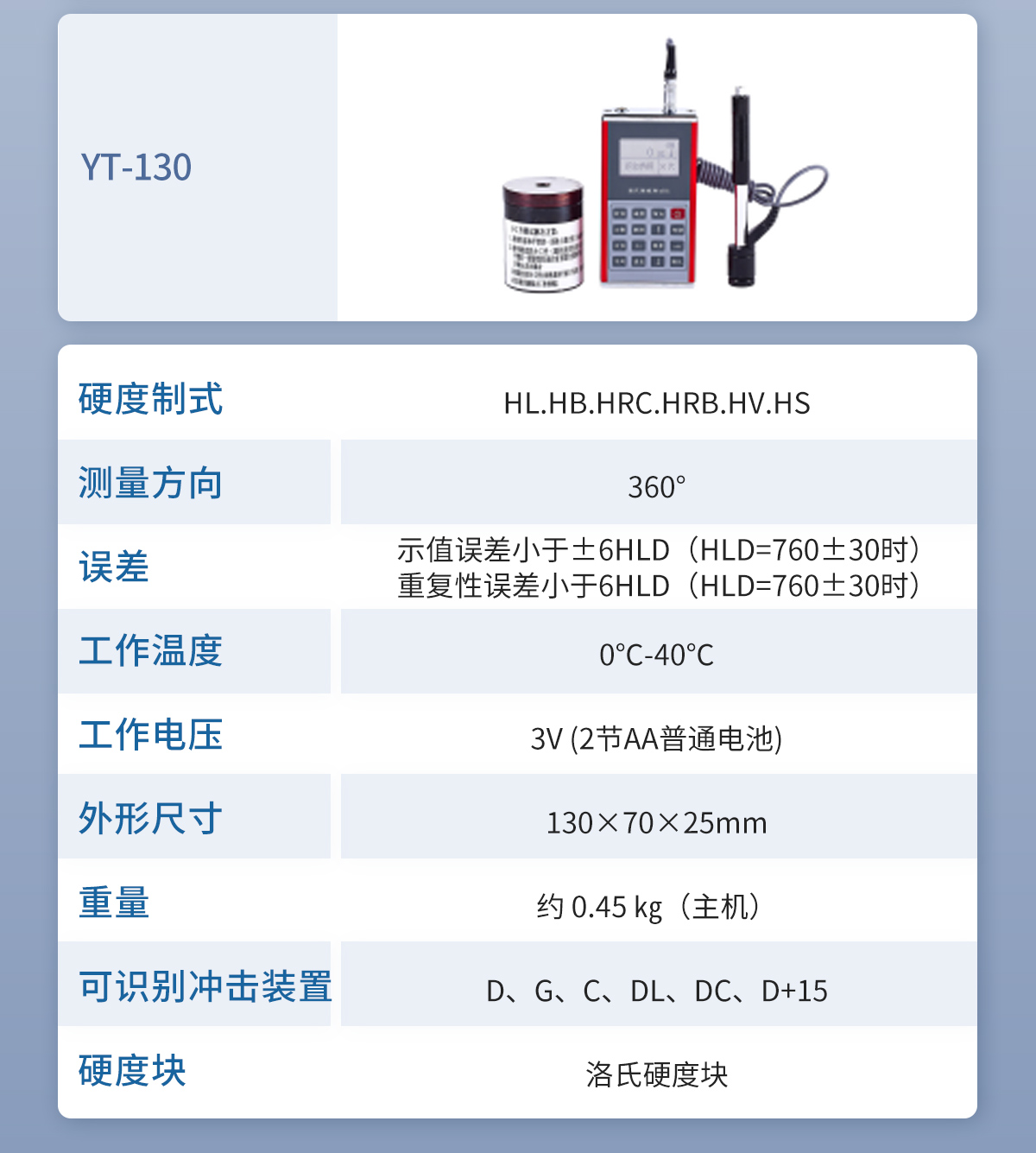 ● 設(shè)計(jì)依據(jù)標(biāo)準(zhǔn):《里氏硬度計(jì)技術(shù)條件》 JB/T 9378-2001;