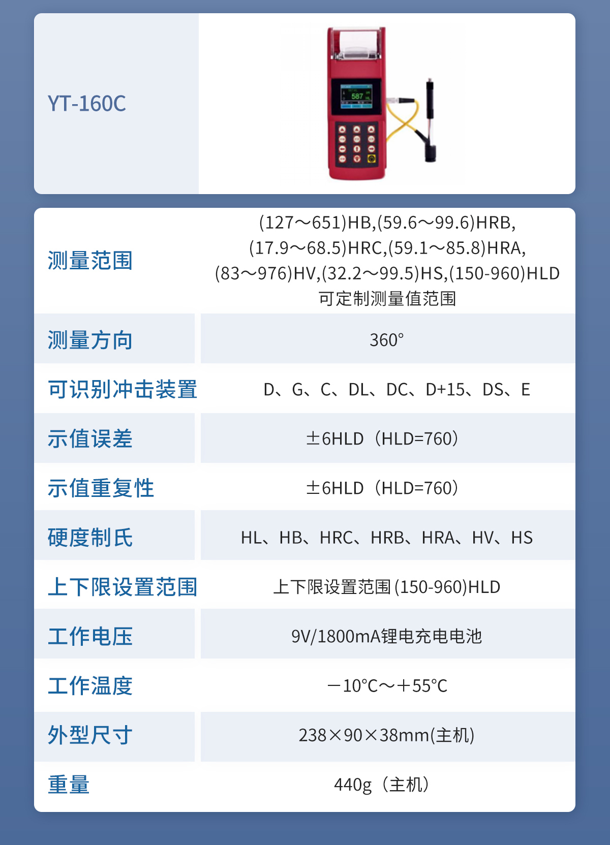 布洛維里氏硬度計(jì) YT-160C 技術(shù)參數(shù)
