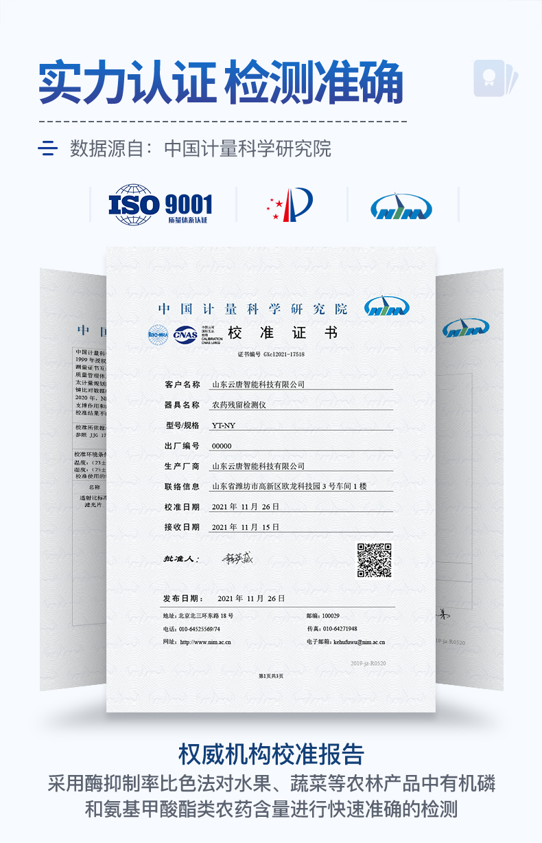檢測標(biāo)準(zhǔn):依據(jù)國家標(biāo)準(zhǔn)方法(GB/T5009.199-2003)以及世界衛(wèi)生組織WHO、世界糧農(nóng)組織FAO殘留農(nóng)藥檢測標(biāo)準(zhǔn)、世界環(huán)境保護局EPA參照攝入量等要求來設(shè)計。采用酶抑制率比色法對水果、蔬菜等農(nóng)林產(chǎn)品中有機磷和氨基甲酸酯類農(nóng)藥含量進行快速準(zhǔn)確的檢測,乙酰膽堿酯酶和丁酰膽堿酯酶試劑均可以使用,符合國家標(biāo)準(zhǔn)和農(nóng)業(yè)部標(biāo)準(zhǔn)的要求。
