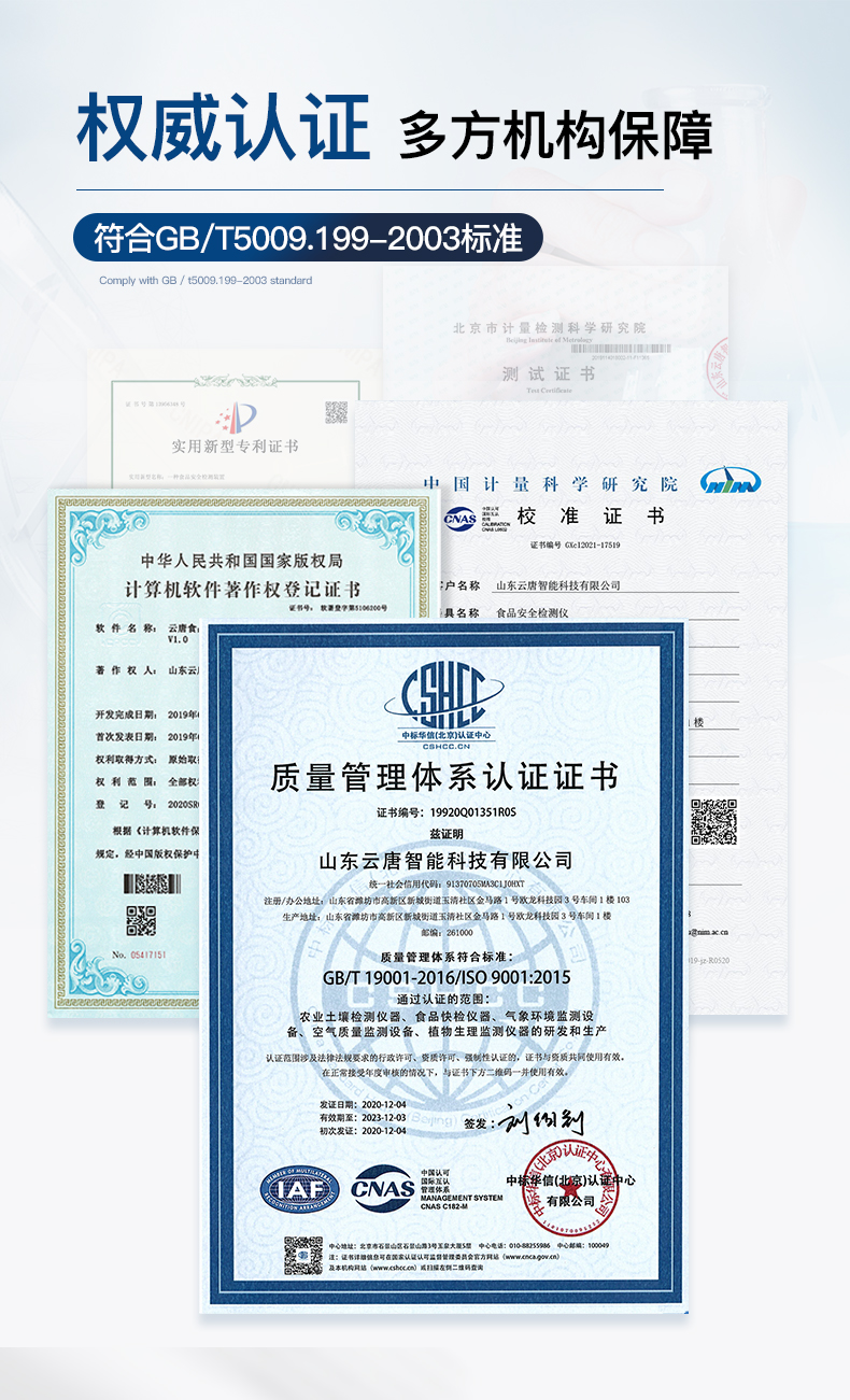 云唐全自動農藥殘留檢測儀YT-NY2000,檢測標準:依據國家標準方法(GB/T5009.199-2003)以及世界衛生組織WHO、世界糧農組織FAO殘留農藥檢測標準、世界環境保護局EPA參照攝入量等要求來設計。采用酶抑制率比色法對水果、蔬菜等農林產品中有機磷和氨基甲酸酯類農藥含量進行快速準確的檢測。