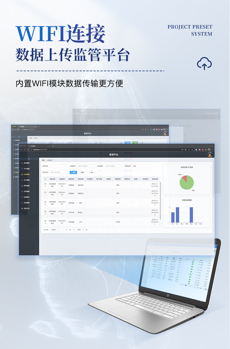 | 機(jī)箱采用工業(yè)級(jí)ABS工程塑料箱,方便攜帶,穩(wěn)固耐用,便于流動(dòng)測(cè)試。 | 安卓智能操作系統(tǒng),采用更加**和人性化操作,儀器具有wifi聯(lián)網(wǎng)上傳、4G聯(lián)網(wǎng)傳輸、GPRS無線遠(yuǎn)傳、網(wǎng)線連接功能,快速上傳數(shù)據(jù)。 | 智能化程度高,儀器具有自檢功能:具有開機(jī)自檢和調(diào)零功能,具有自動(dòng)檢測(cè)重復(fù)性功能。 | 新一代高速熱敏打印機(jī),檢測(cè)完成可自動(dòng)打印檢測(cè)報(bào)告和二維碼。 | 儀器帶有監(jiān)管平臺(tái),數(shù)據(jù)可局域網(wǎng)和互聯(lián)網(wǎng)數(shù)據(jù)上傳,檢測(cè)結(jié)果直接傳至食品安全監(jiān)管平臺(tái)。進(jìn)行區(qū)域食品安全監(jiān)管及大數(shù)據(jù)分析處理與數(shù)據(jù)統(tǒng)計(jì),檢測(cè)區(qū)域食品安全長(zhǎng)短期動(dòng)態(tài),達(dá)到食品安全問題預(yù)估、預(yù)警 | 一體化主機(jī),包含食品安全檢測(cè)模塊、多通道農(nóng)藥殘留檢測(cè)模塊、膠體金免疫層析檢測(cè)模塊。 | 一體化便攜式快檢設(shè)備,滿足現(xiàn)場(chǎng)及流動(dòng)檢測(cè)使用需求,能夠在同一軟件下實(shí)現(xiàn)所有檢測(cè)項(xiàng)目的檢測(cè),并可通過同一窗口直觀顯示檢測(cè)結(jié)果。 | 膠體金模塊檢測(cè)方式:軌道式自動(dòng)傳輸掃描,檢測(cè)完成后自動(dòng)退出檢測(cè)卡。 | CT線自動(dòng)識(shí)別,無需手動(dòng)調(diào)整。 | 儀器具有品類多種類樣品菜單庫(kù),可靈活選擇檢測(cè)樣品,不同的檢測(cè)通道可同時(shí)檢測(cè)不同的樣品項(xiàng)目。 | 樣品處理簡(jiǎn)單省力,整體操作快速、安全、便捷。 | 高靈敏度,高檢測(cè)精度,高重復(fù)性精度,掃描式高精度光學(xué)傳感器。 | 內(nèi)置強(qiáng)大的數(shù)據(jù)庫(kù),可在儀器上直接選擇樣品名稱、檢測(cè)指標(biāo)、送檢單位等信息,也可在儀器上直接編輯錄入樣品名稱、檢測(cè)指標(biāo)、送檢單位等信息并保存進(jìn)樣品數(shù)據(jù)庫(kù)。 | 儀器具有自身保護(hù)功能,可設(shè)置用戶名及密碼,防止非工作人員操作等。 | 儀器具有重新校準(zhǔn)、鎖定、恢復(fù)出廠設(shè)置功能。 | 支持U盤存儲(chǔ)。 結(jié)果判定線可修改,對(duì)照值標(biāo)定值可保存,斷電不丟失數(shù)據(jù)。 | 兼容市場(chǎng)上所有的膠體金卡,使用耗材不受限制,極大增強(qiáng)用戶使用體驗(yàn)。 |