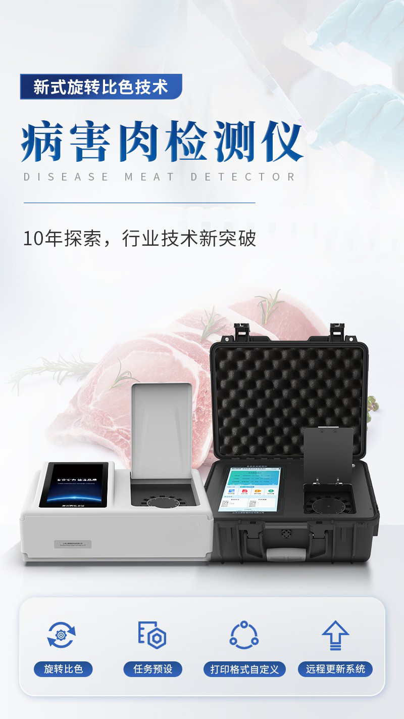 該病害肉檢測儀為集成化食品安全快速檢測分析設備,目前已于市場監管局、食品肉產品深加工企業、學校食堂、衛生部門、畜牧部門、屠宰場、檢驗檢疫部門等單位廣泛使用。