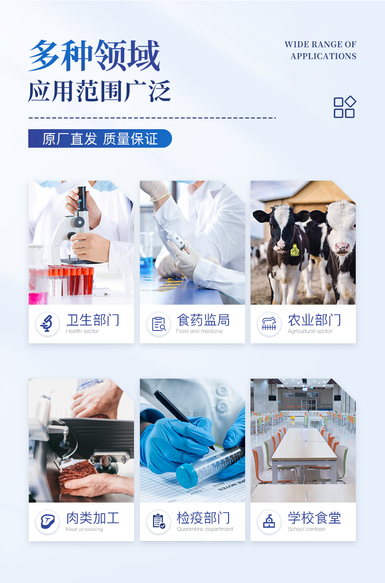 該瘦肉精檢測儀廣泛應用于食藥監局、衛生部門、醫學院校、科研院所、農業部門、養殖場、屠宰場、食品肉產品深加工企業、檢驗檢疫部門等單位使用。