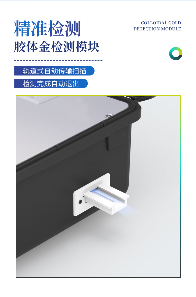 6、膠體金模塊檢測方式:軌道式自動傳輸掃描,檢測完成后自動退出檢測卡。
