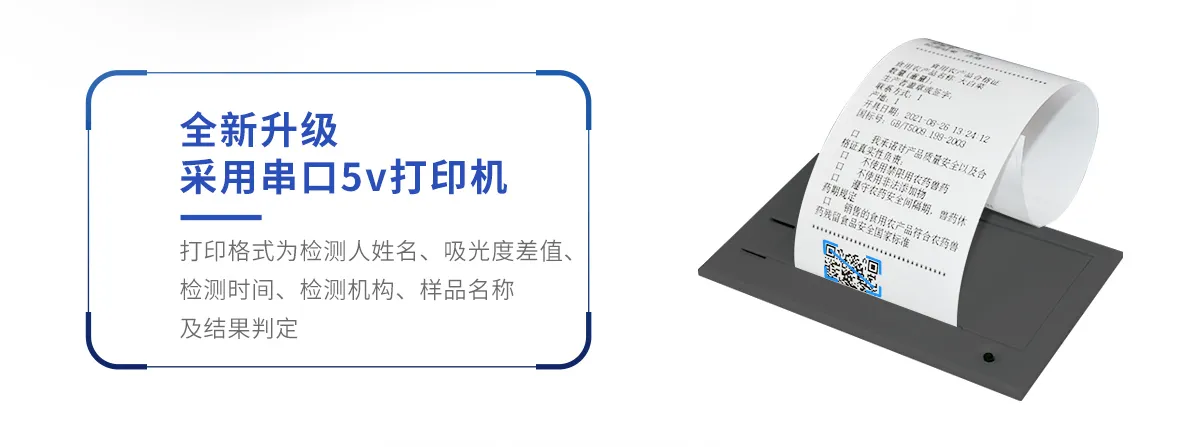 儀器采用手提式一體化系統檢測技術,將分光光度模塊、膠體金檢測模塊、新型農殘檢測模塊、數字化管理模塊、無線通訊模塊高度集成于一體,支持檢測200種食品安全檢測項目,同時預留升級檢測方法。儀器檢測模塊標準化、智能化,檢測項目可隨意自由組合。檢測箱體內置多個標準檢測單元,檢測模塊可以調整配置。 顯示屏幕:儀器采用10.1英寸豎向液晶觸摸屏顯,搭配運行安卓智能操作系統,主控芯片采用ARM Cortex-A7,RK3288/4核處理器,主頻1.88Ghz,操作方便,性能更強。檢測通道:≥12通道;采用精密旋轉比色池設計,使用同芯片同光源校準精度,解決不同光源之間的誤差值,更加準確**。(1-12通道間誤差0.1%,***:**202022821055.2)儀器光源:高精度進口四波長冷光源,每個通道均配置 410、520、590、630nm 波長光源,標配**的光路切換裝置,專利光路切換功能可實現64波長,并且所有檢測項目可實現所有通道同時檢測。設備可一鍵校準,自動保存校準數據,自動對比校驗,得到精準光源,采用Android SP存儲數據,光源數據永不丟失,方便每一次使用。通訊接口:配備無線通信模塊、4G(APN)通訊模塊、藍牙傳輸,同時具有雙USB接口以及RJ45網線接口,可以多方式實現數據保存及數據傳輸。 存儲方式:支持U盤存儲,標準USB接口,免驅動安裝。檢測結果存儲容量20萬條以上,可生成Excel表格進行拷貝,并具有登錄保護功能。智能化操作系統:: ★操作系統:儀器可在同一檢測界面自動對應相關檢測通道,一次性選擇1-12個樣品名稱,無需退出界面,節省操作時間。并可以對每個通道屬性和樣品信息單獨進行編輯,例如送檢單位、人員,檢測人員等,打印時勾選打印顯示。★數據集成系統:設備首頁自動匯總分析檢測數據,包含:周檢測數據、月檢測數據,全部檢測總數量,均包含檢測總數,合格數,不合格數,以及相關柱形分析圖,各項檢測數據一目了然,無需電腦查詢,更加快捷直觀。★數據庫系統:十幾項數據庫分類管理儀器:包含項目類型、項目數據、檢測數據、歷史記錄、國標信息、曲線信息、采樣信息、檢測信息、受檢信息、復核信息、圖表信息、光源校準信息、打印樣式信息、樣品庫信息等等,數據庫之間互相協調聯動保證數據的真實完整性。同時產品數據庫以及歷史檢測記錄支持一鍵檢索功能。★限量規判系統:具有限量查詢、添加物質合規判定系統。檢測出結果后,系統自動調用系統數據庫中相關國標進行比對判定,客觀顯示判定結果是否合格★項目預設系統:儀器具有任務預設模塊,一鍵提前預設,給出方便快捷的新檢測方案,每一個任務分別可以設置不同的樣品、批次、編號、來源、備注、抽樣信息、檢測信息、受檢信息、復核信息等更多信息。樣品送檢時一鍵調取保存信息,并可多次調取,大大提高檢測效率。★數據監管系統:同步對接監管平臺,數據可局域網和互聯網數據上傳,檢測結果可選擇直接傳至食品安全監管平臺。進行區域食品安全監管及大數據分析處理與數據統計,檢測區域食品安全長短期動態,達到食品安全問題預估、預警。★打印系統:內置全新打印機,新創自定義打印方式,可按需靈活勾選控制:產品合格證(國家農業部標準要求),二維碼,抽樣信息、檢測信息,受檢信息、復核信息、抽樣日期、檢測日期等信息的打印。供電模式:儀器交直流兩用,直流12V供電,可連接車載電源,可配6ah大容量充電鋰電池,電量可實時顯示,方便戶外流動測試。膠體金檢測模塊:采用雙通道CMOS成像處理技術及膠體金免疫層析技術,可同時讀取雙膠體金卡數據,自動采集、處理分析,將檢測結果顯示,并可根據參考限值自動判斷檢測結果,可檢測常見的獸藥殘留、生物毒素、抗生素、違禁添加物等。★探測技術:CMOS成像探測;★檢測通道:1個通道;★檢測方式:消線法和比色法;★顯示模式:陰性或陽性;★曲線形式:軌道式掃描方式,顯示金標卡圖像,實時生成、識別CT曲線圖,無需手動調整,完成檢測后自動退出檢測卡。兼容市場上其他金標卡,使用耗材不受限制。儀器加入遠程升級功能,可定向分客戶分儀器更新,開機后自動更新,客戶無需任何操作,即可升級全新項目。做到了無需退換機器即可實現實時遠程升級檢測儀器。