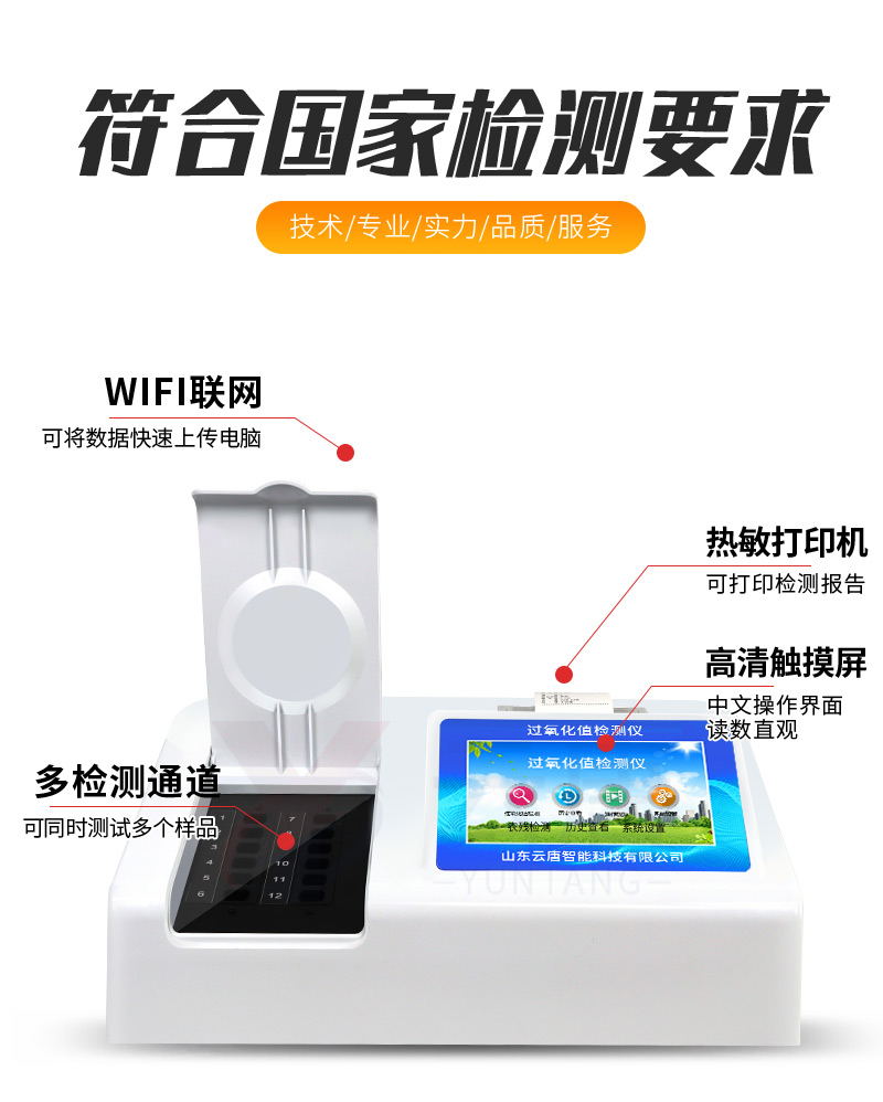 食用油過氧化值檢測儀為集成化油品快速檢測分析設備,能夠快速檢測食用植物油、食用豬油、花生油、葵花油、米糠油、食品、肉制品中的過氧化值含量;通過檢測可確定植物油是否符合國家標準或是否為劣質油、地溝油等。儀器預留其他項目檢測程序和端口,根據日后需求可方便的自主增加檢測項目。日后可升級為檢測水產品、面制品的綜合類型儀器。