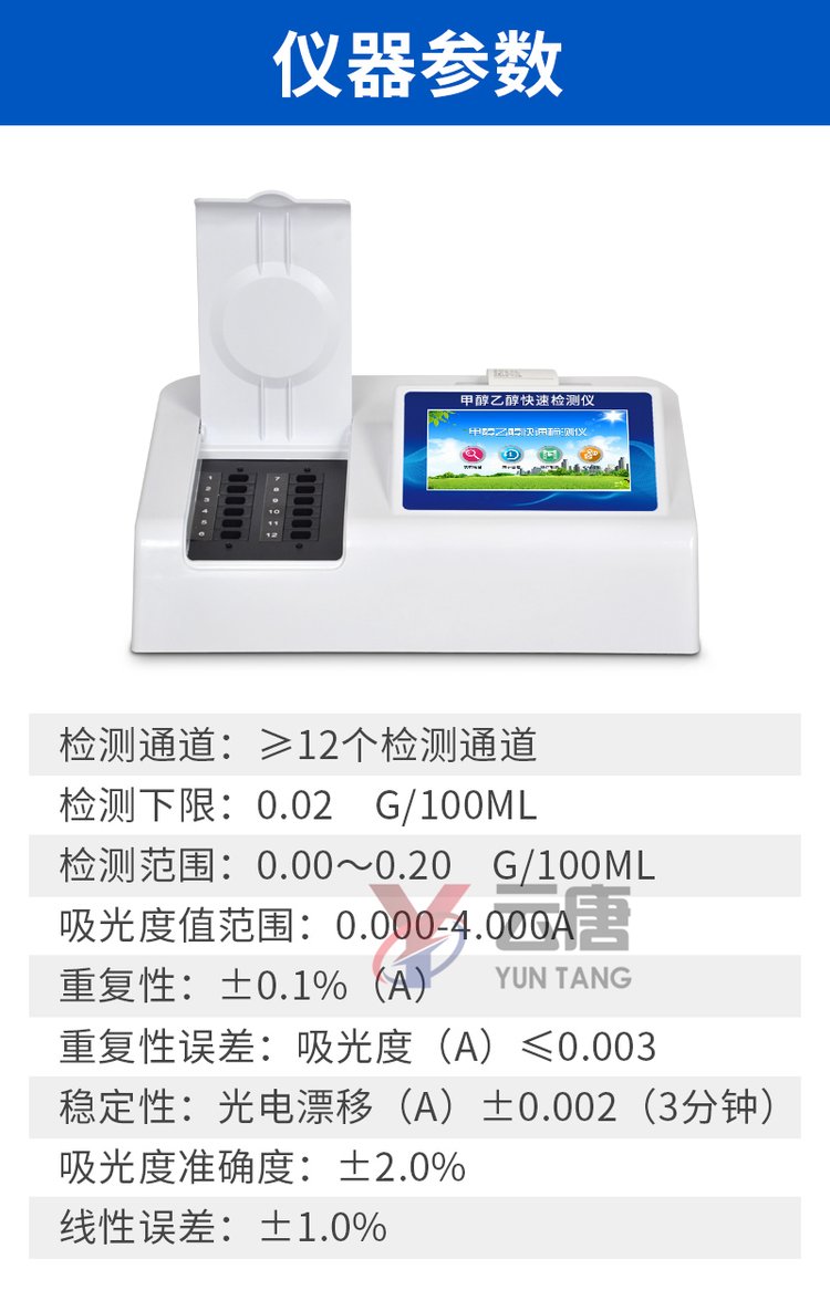可快速定量檢測各類酒中的甲醇的含量,儀器預留其他項目檢測程序和端口,根據日后需求可方便的自主增加檢測項目。日后可升級為檢測,水產品,肉制品,面制品的綜合類型儀器。