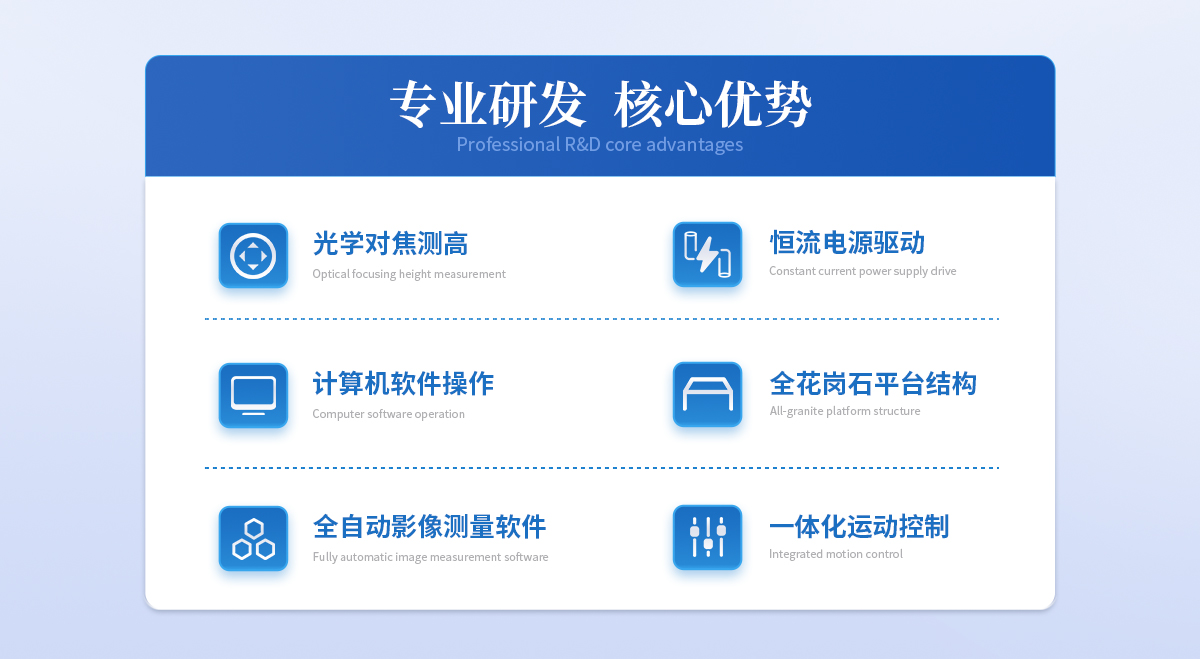 | ? 三軸均采用臺灣LEPIN高精度直線導(dǎo)軌、精密級無牙螺桿傳動,噪音低振動小,動態(tài)幾何誤差變形*小。 | ? 采用優(yōu)質(zhì)花崗巖大理石底座、立柱、工作臺,具有良好的溫度穩(wěn)定性、抗實(shí)效變形能力 。 | ? 有限元結(jié)構(gòu)分析及優(yōu)化結(jié)構(gòu)設(shè)計為該系列保證了系統(tǒng)整體的高精度及高穩(wěn)定性。 | ? 采用集成式多功能控制器,整體機(jī)臺故障率低,售后更方便 。 | ? 配備紅點(diǎn)激光定位裝置,方便快捷找準(zhǔn)測量位置 。 |