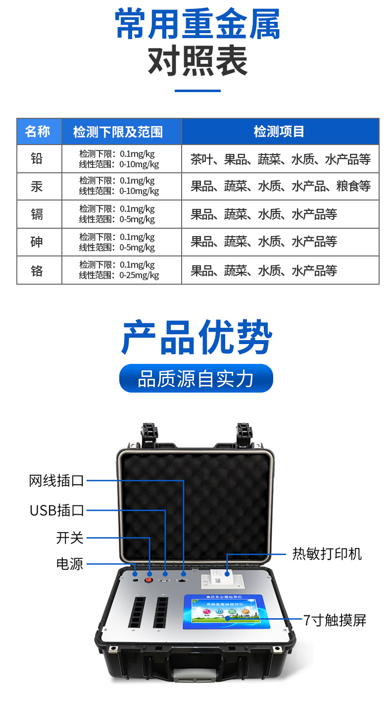 食品重金屬快速檢測儀可廣泛應(yīng)用于果品、蔬菜、水質(zhì)、水產(chǎn)品中重金屬鉛、六價(jià)鉻、汞、砷、鐵、鎳、鋁的快速檢測,檢測項(xiàng)目可根據(jù)客戶的需求定制。2025-11-14